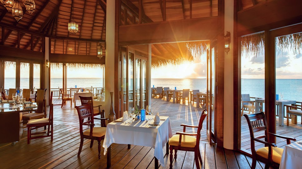 Matheefaru Restaurant  Whatever takes your fancy and whatever the time of day or night, our resident Chefs remain entirely at your disposal. They can conjure up a myriad of succulent gourmet dishes to tempt your sensations and satisfy any taste at any time. Our Chefs can suggest a menu specially designed for you using fresh ingredients or can personalize a menu to excite your palate.The dishes served in Hideaway Beach Resort and Spa are far and wide selections from around the globe. Matheefaru restaurant offers international cuisine with a refined french touch with weekly themed buffets at night along with  live cooking stations and a la carte menu options set over two private breathtaking pavilions over the water.